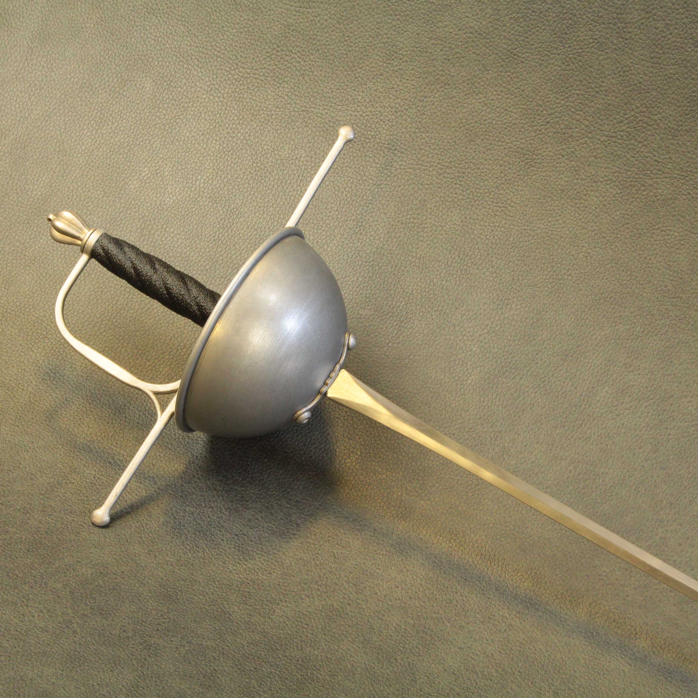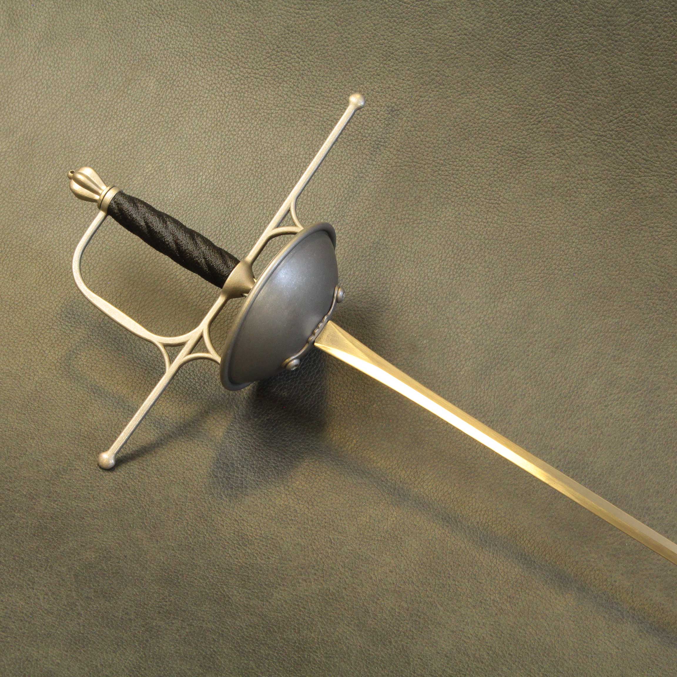 Our version is a deeply inspired simulator of the originals that can be considered the lightest sparring late renaissance rapier on the market today. At under 700 grams (like the originals), these move quickly and effortlessly without feeling the least bit floppy.