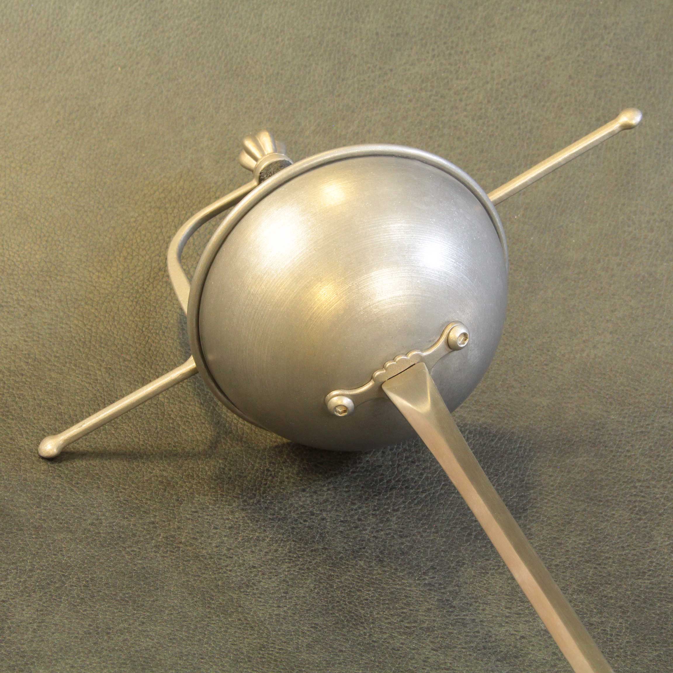 The guard is small but not uncomfortably so. The ricasso is still able to accept two fingers and the twist profile grip is our standard 3.5″ length. We offer 11″ quillons on this model to replicate the antiques of the period, which make binding easy and effective. There are two cup sizes to choose from. The 4.5″ diameter cup is 1.5″ deep and the 5″ diameter cup is 2-3/8″ deep. Both cup sizes have a rolled edge for burr and damage management and are made from 16 ga 1018 steel. We off a replica pommel of the original antiques that is also found on our Small sword. This small pommel puts the point of balance right at 2-3/4″ (7cm) with the Large Cup option.