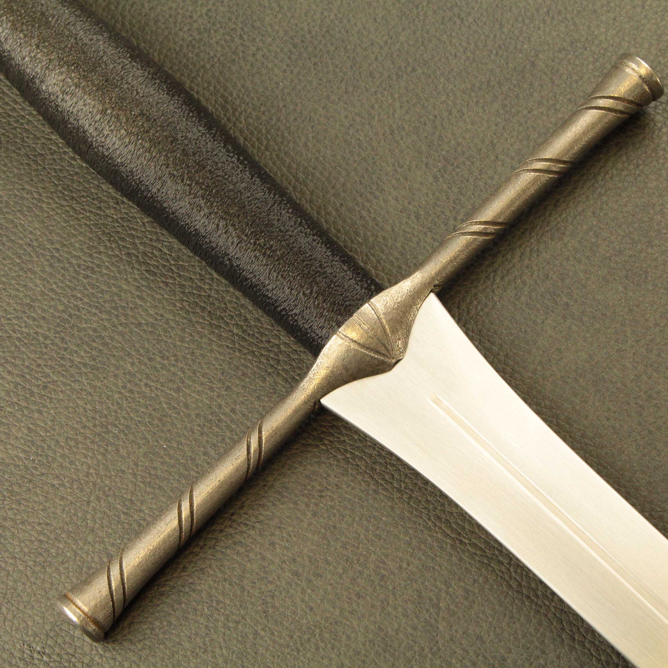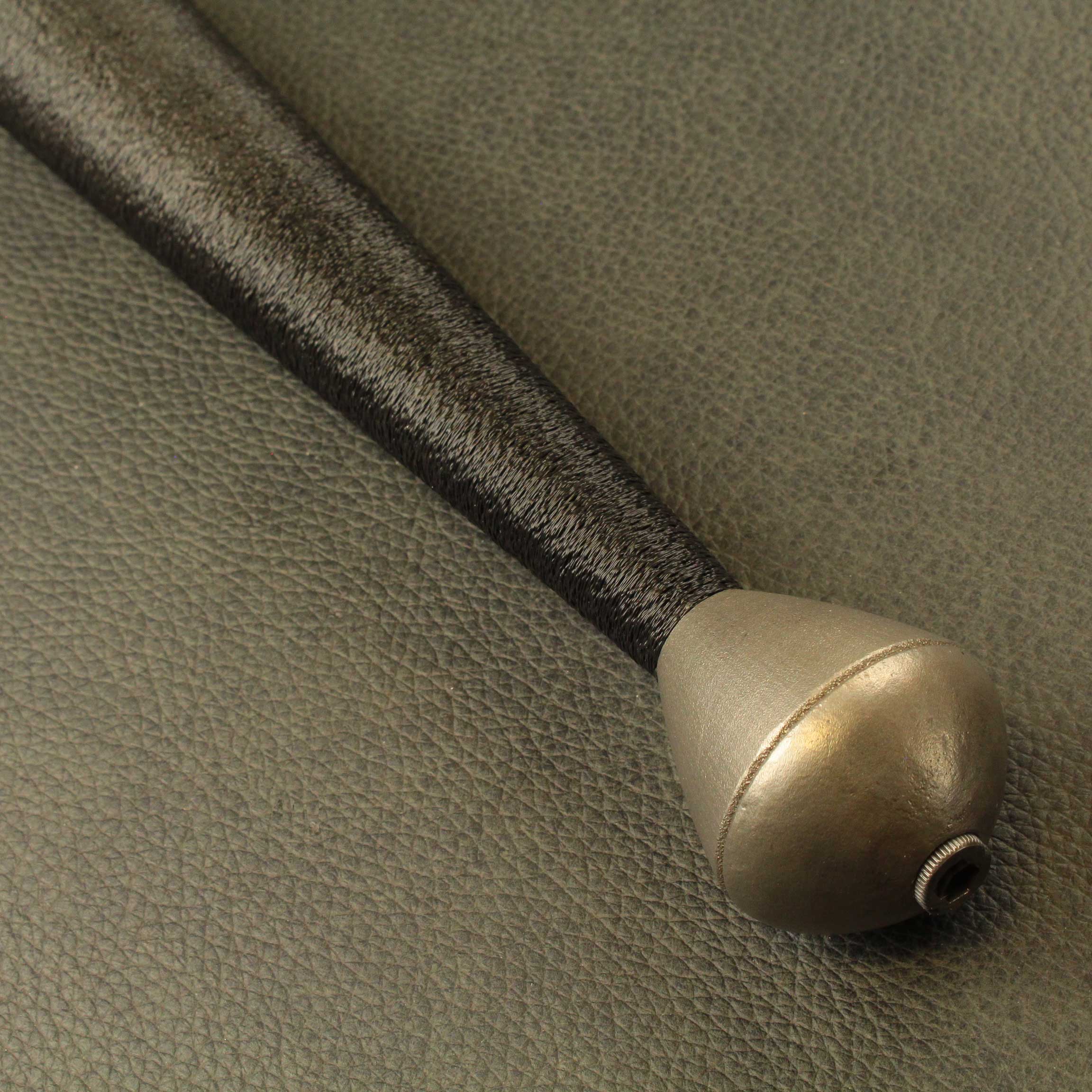 We offer two grip lengths as well. 10” (25.4cm) and 12” (30.5cm). The contoured and waisted grips are made from 3d printed high temp PETG which absorbs shock very well and works as a compression spring with this design to virtually eliminate vibration and impact shock but keep everything tight. In fact, this design is unique among longswords in this industry because the pommel locks over the blade tang and terminates directly on tang shoulders on either side of the M6 thread. Thereby, compressing the grip but landing metal on metal (pommel on tang shoulders) for a union that cant shrink or come loose. This design cannot be overtightened and will not come loose until you want it to!