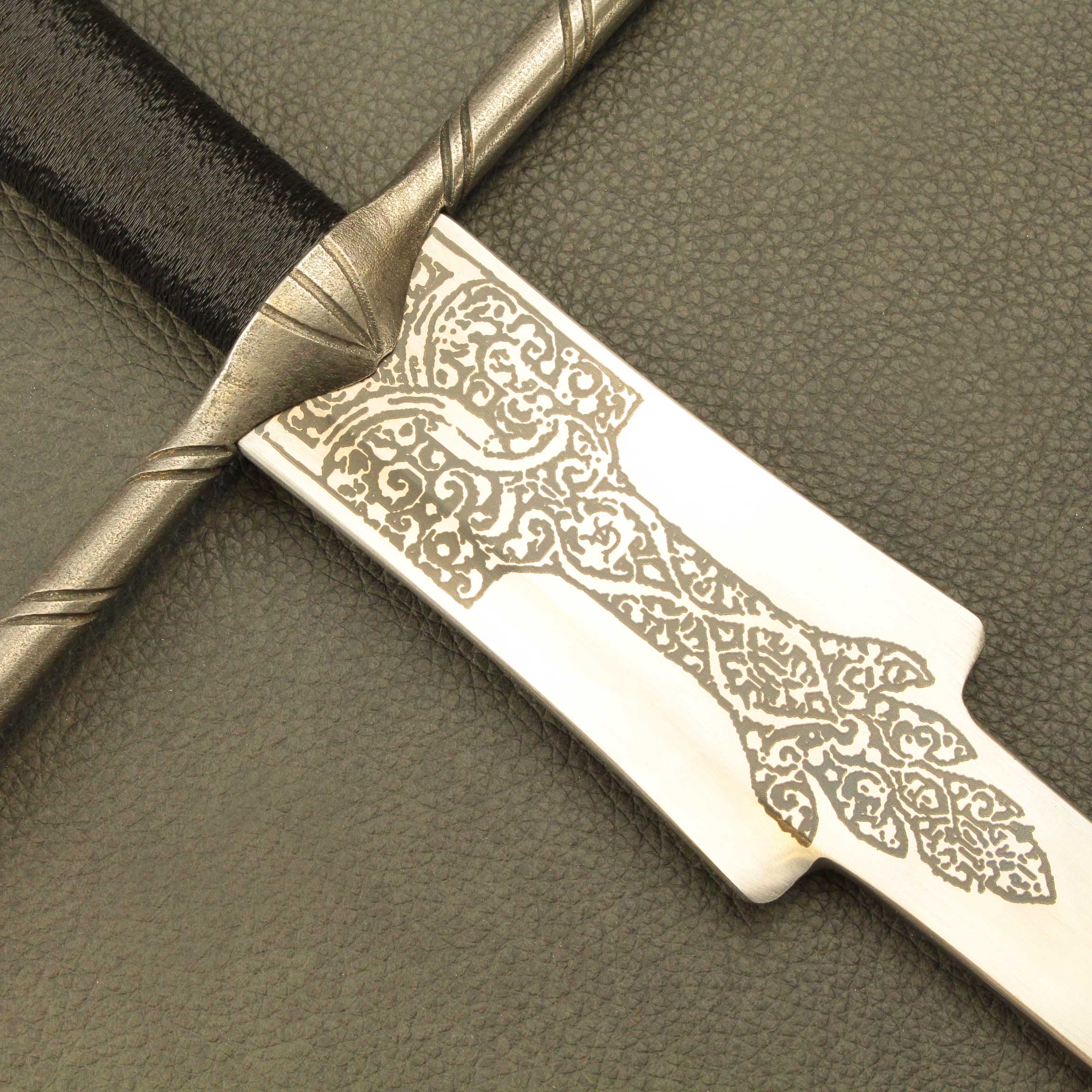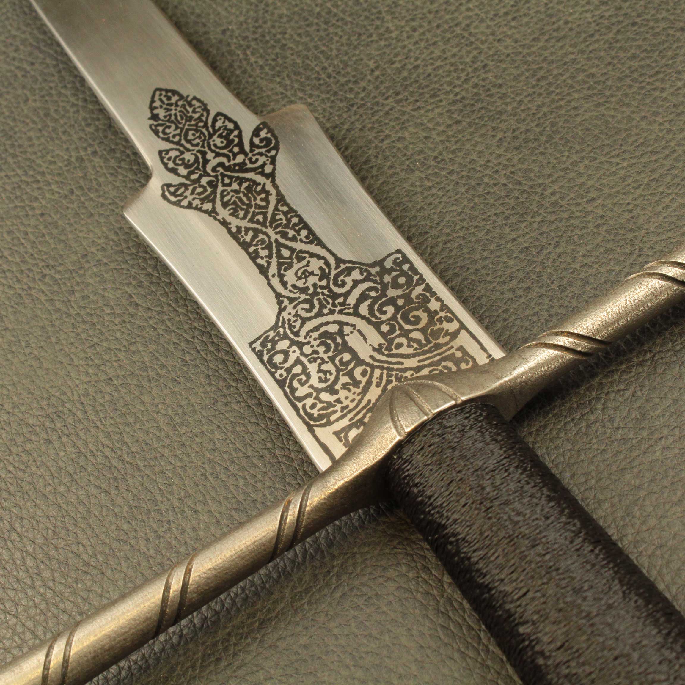 We started with hyper accurate 3D models of the MET feder hardware, down to the millimeter, and even added some of the embossed detail. We then strategically beefed the guard up to exceed our own expectations of toughness. The cross and pommel have been made of hardened 17-4 stainless steel and finished with all the detail you would expect to see on an antique in a museum.