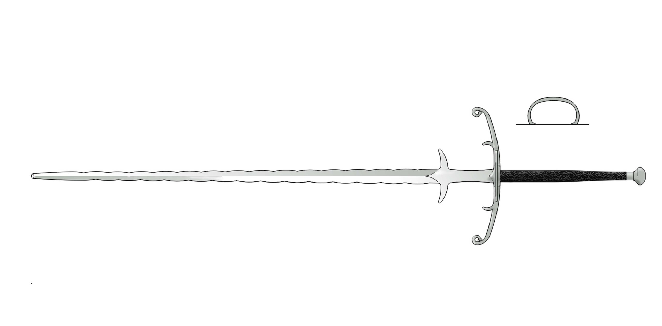 For the blade we’ve selected a flamberge profile with a 6″ wide schilt. This was a common profile for such swords through the 16th and 17th centuries. We offer two blade lengths; 50″ (127cm) and a 46″ (117cm). The 46″ (117cm) blade length used in conjunction with our 12″ (30.5cm) grip maintains an overall sword length of 60″ (152.4cm) which is the maximum overall length allowed within the SCA (Society of Creative Anachronism). For combat disciplines that don’t have any overall sword length restrictions, the 50″ (127cm) blade can be chosen to create a sword as long as 66″ (167.6cm) long! These blades come with a swelled tip and are ground with a diamond distal taper in either F3 flex (SCA rapier combat) or F4 flex (SCA C&T/HEMA tournament flex).